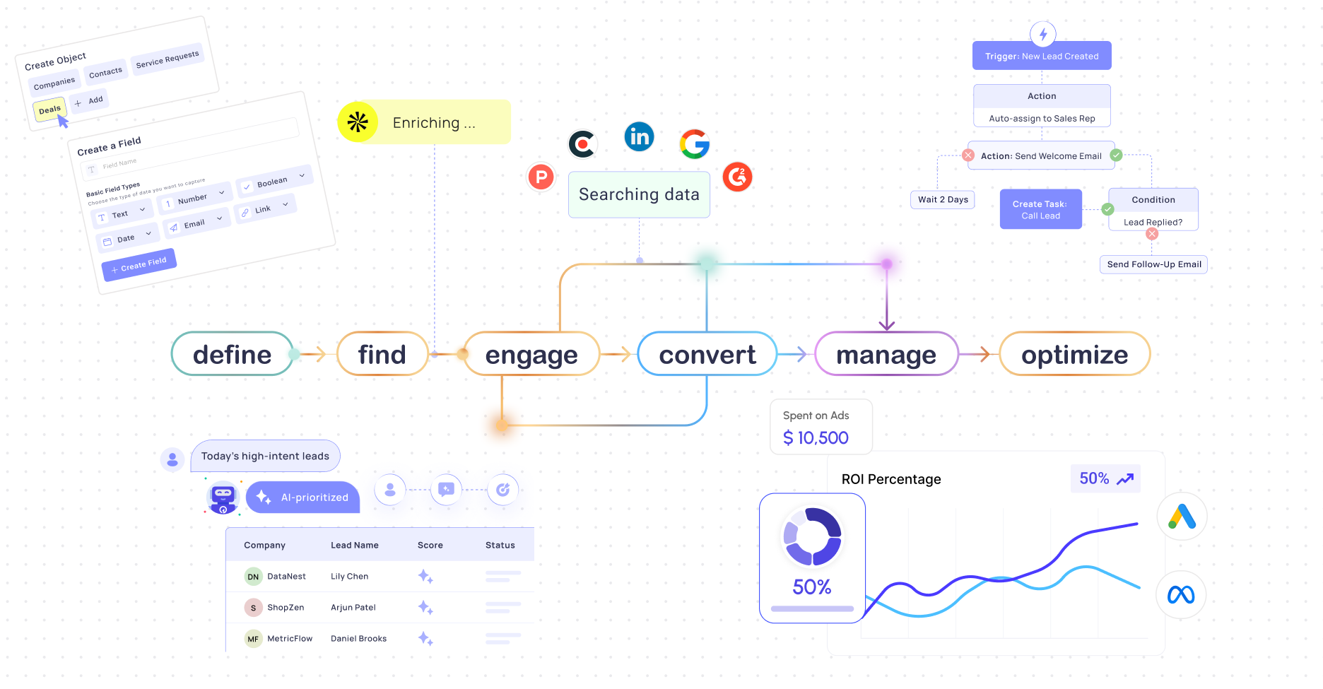 AI creates highly personalized, context-aware engagement that feels human. Intelligent lead scoring and intent analysis prioritize high-value opportunities.